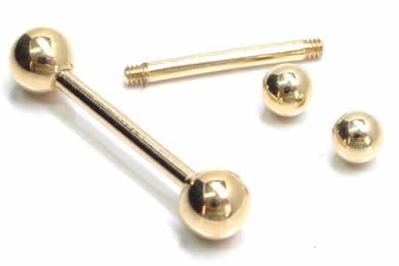 眩しいくらいにゴールドの輝きを存分にアピールしたスムーズなバーベルが14金の輝きを存分に発揮した贅沢なゴールドアクセサリー。