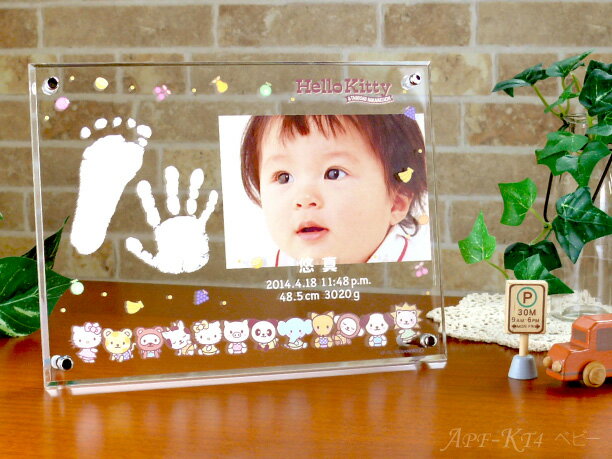 ハローキティ 手形足形 キット付き メモリアル フォトフレーム 「ベビー」 名入れ ( 漢字 / ひらがな / アルファベット ) アクリル 印刷タイプ 出産祝い 内祝 赤ちゃん ベビー ギフト キティちゃん サンリオ フォトスタンド 写真立て