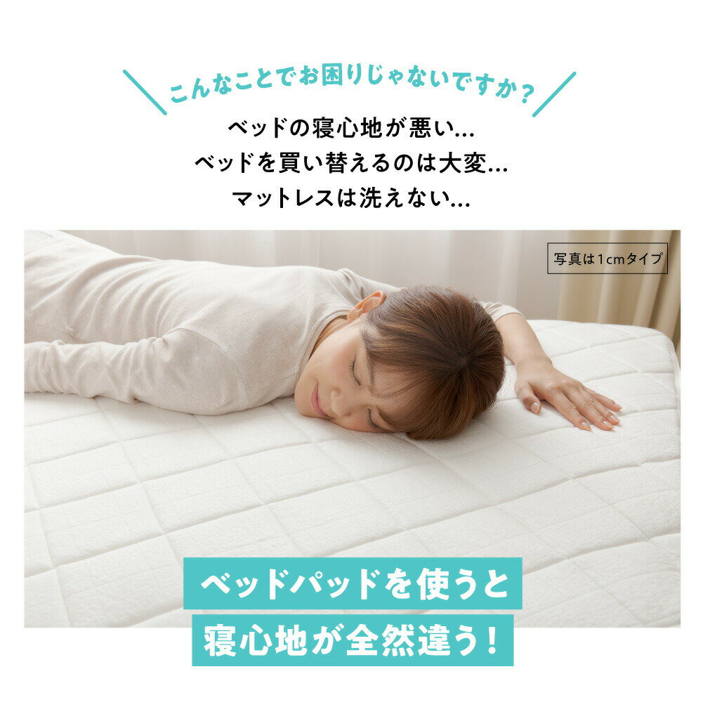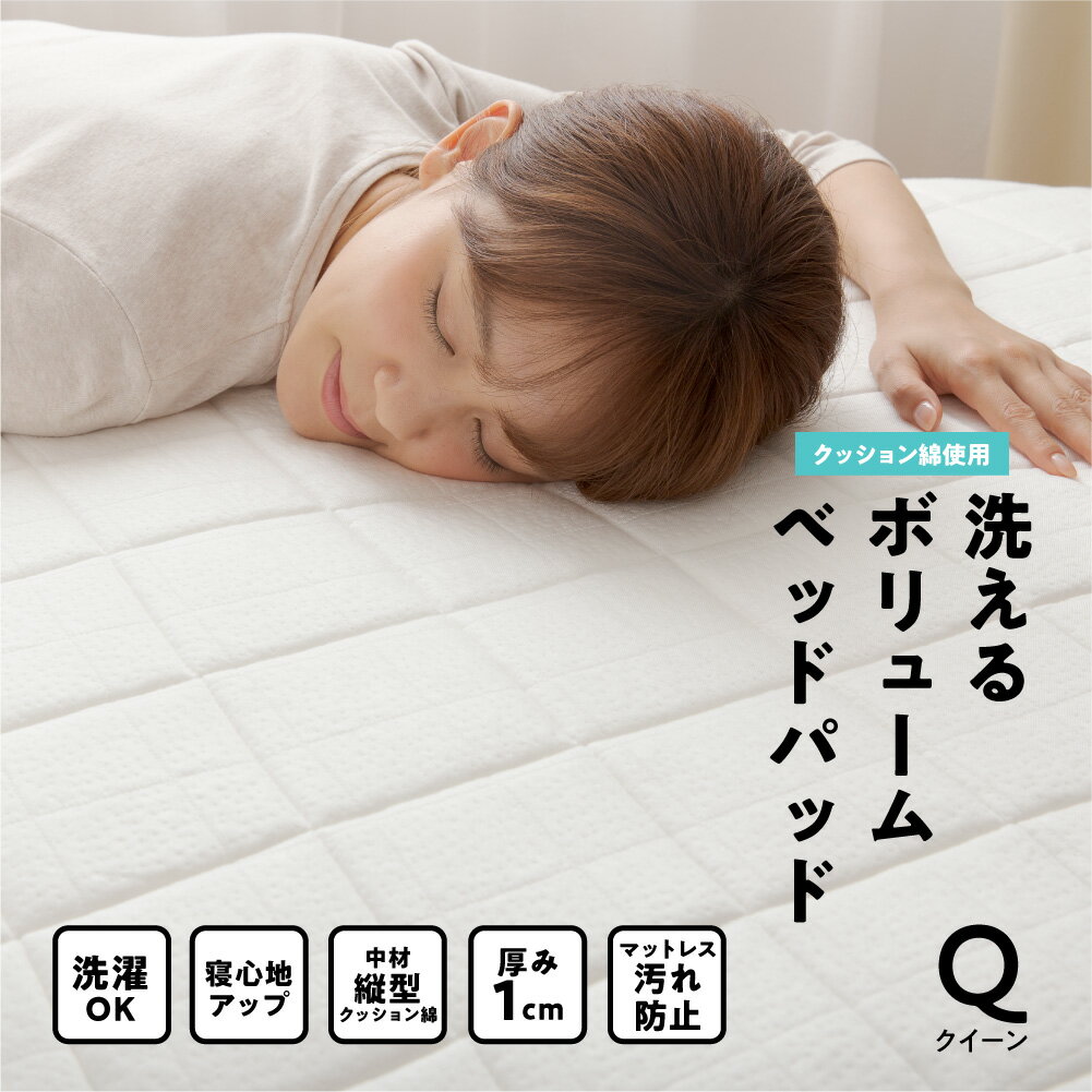 【割引クーポン配布中】【クッション綿使用/洗濯機OK】洗えるボリュームベッドパッド クイーン 1cm厚 160×200cm 寝具 敷きパット 敷きパッド 敷き布団 ベッドパッド 布団 快適 キルト クイーンサイズ